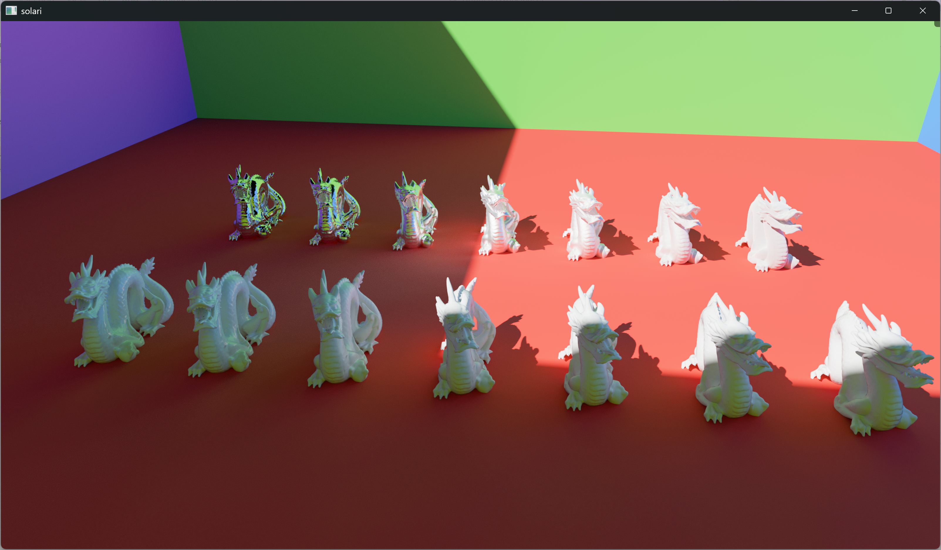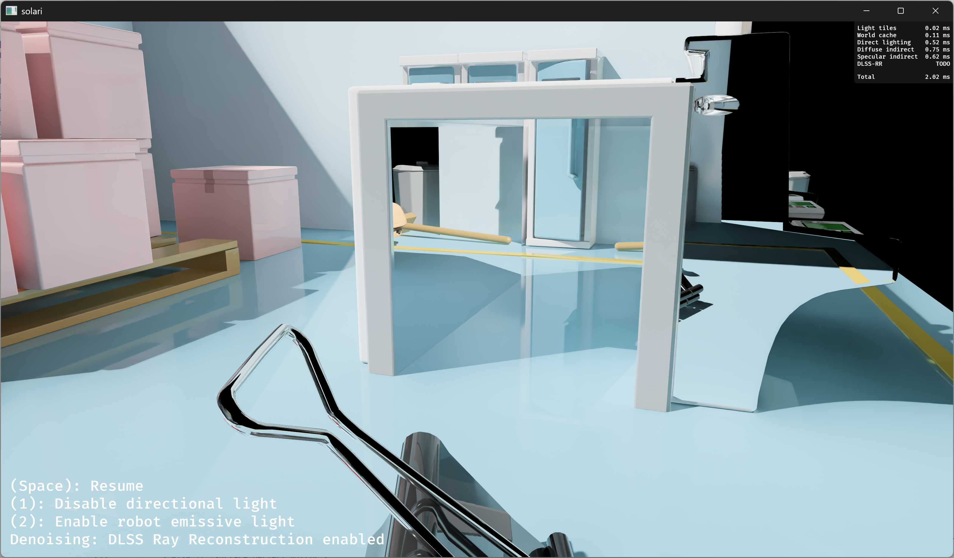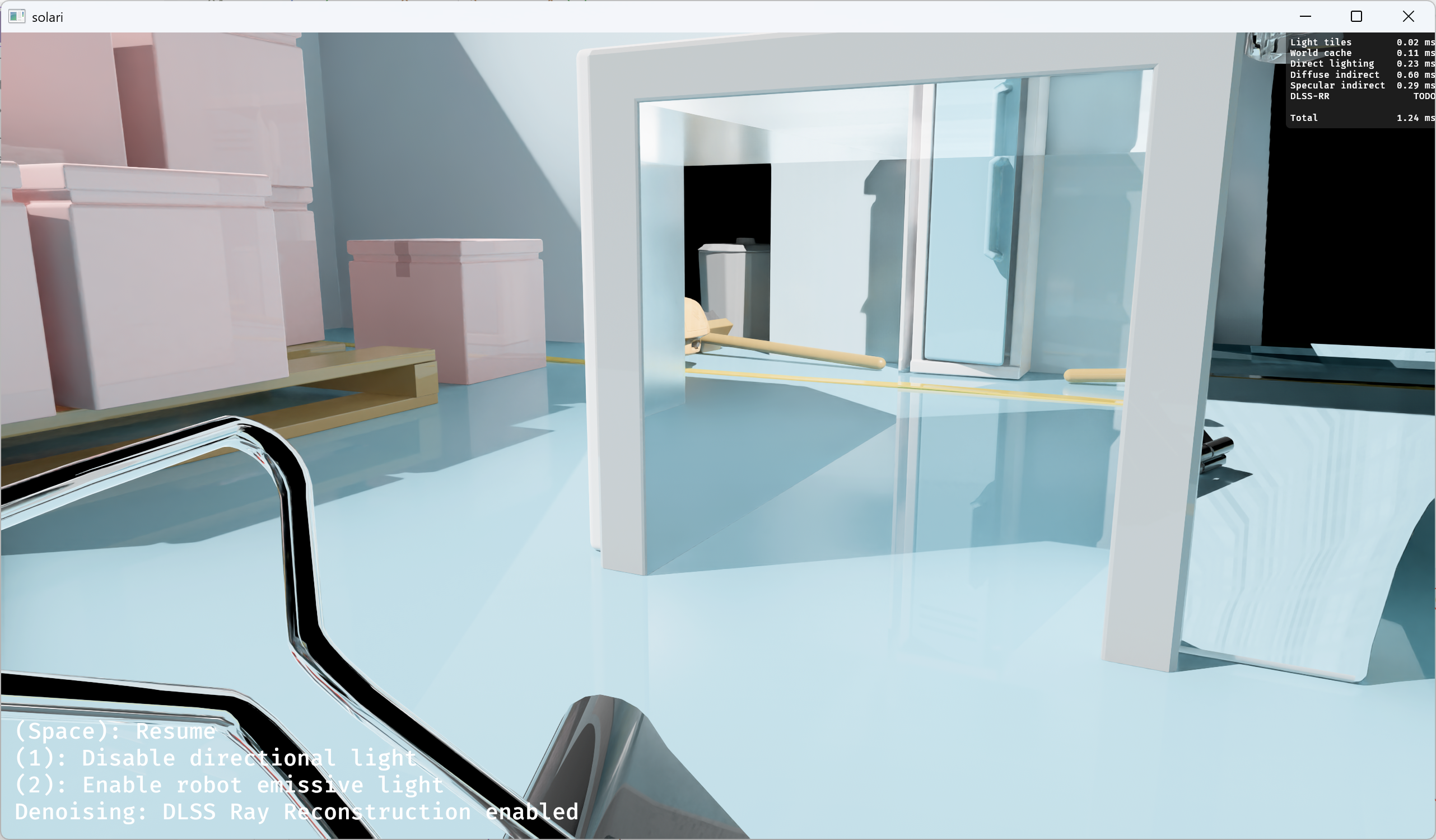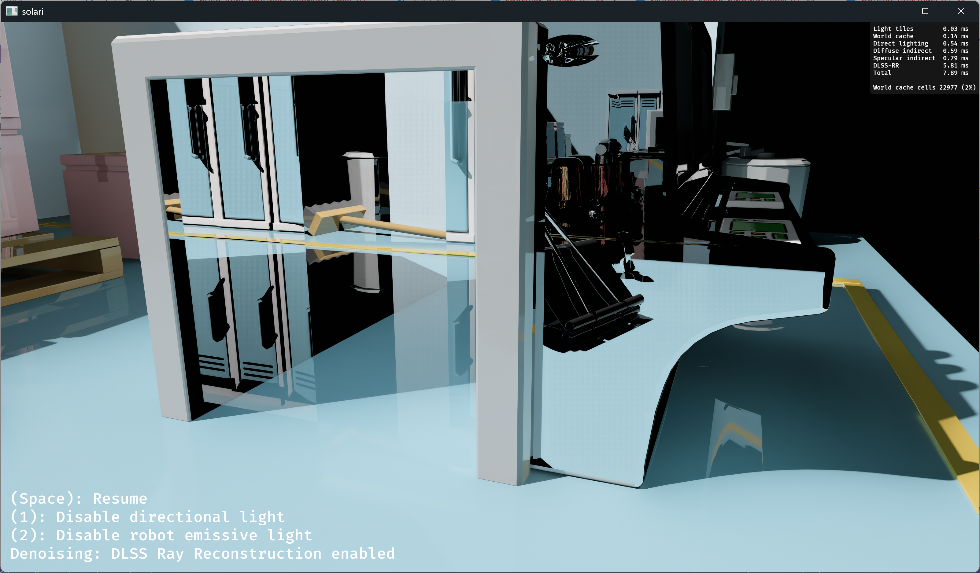 Compared to 0.18, this cycle was lighter on big features. Most of my time went into polishing existing aspects of the renderer, rather than writing new techniques. I spent a lot of time fixing Solari's material BRDF, improving specular quality, and yet again improving the world cache.