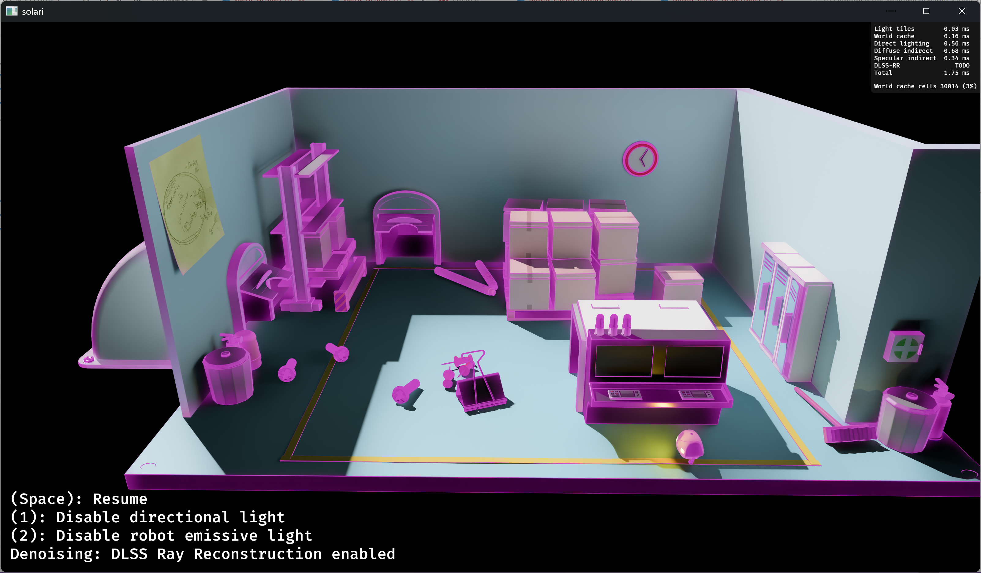 Welcome back to the third installment of my series on the development of Solari, Bevy's realtime pathtraced renderer! Bevy 0.19 is fast approaching, so let's talk about what I've been working on.